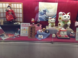 浅草駅に着いて、駅に招き猫が飾ってあったので写真を撮る。