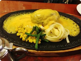 どん!と置かれたあつあつのハンバーグに、いい香りのチーズソースをたっぷりブッかけたオランダ風。